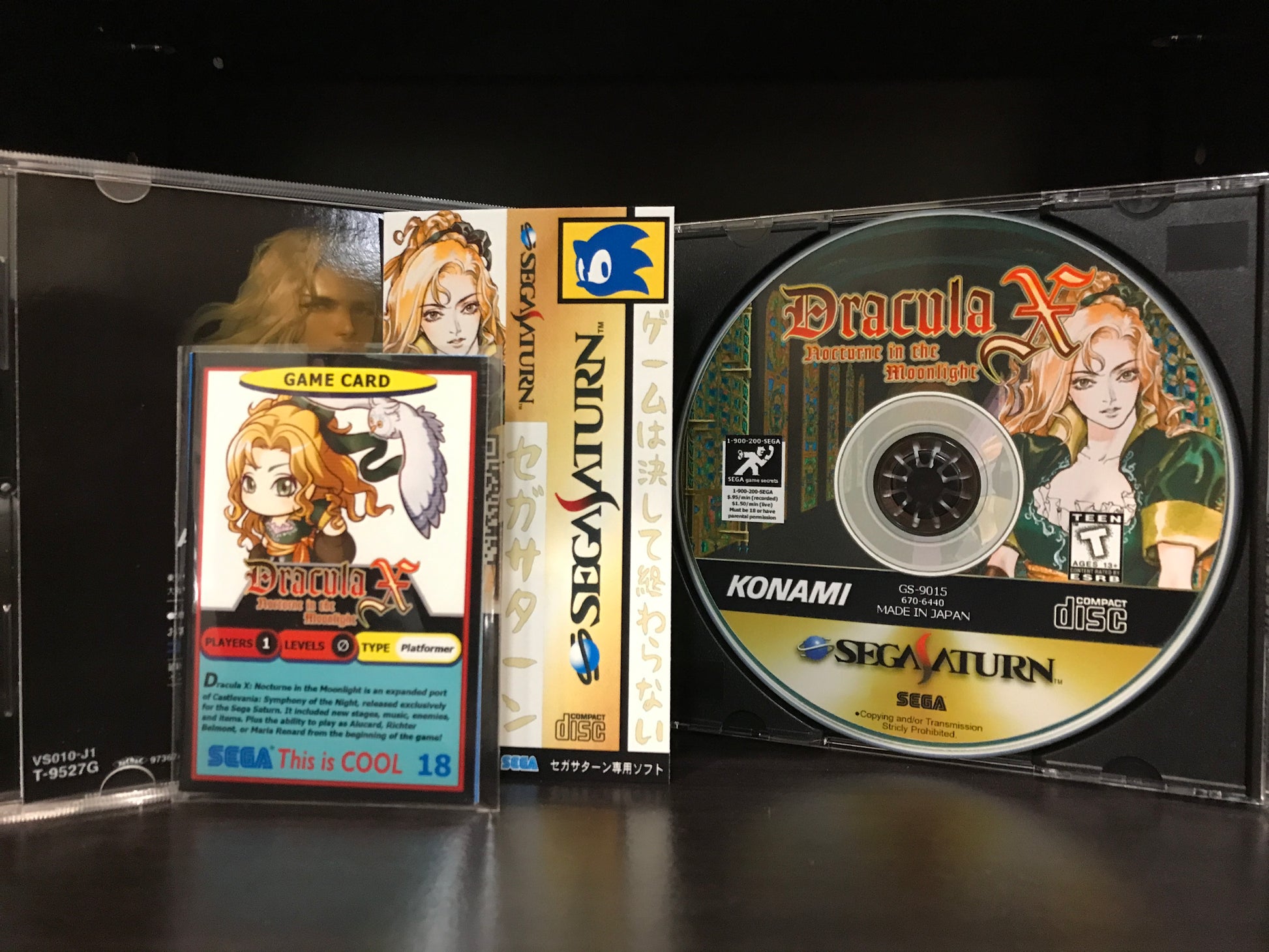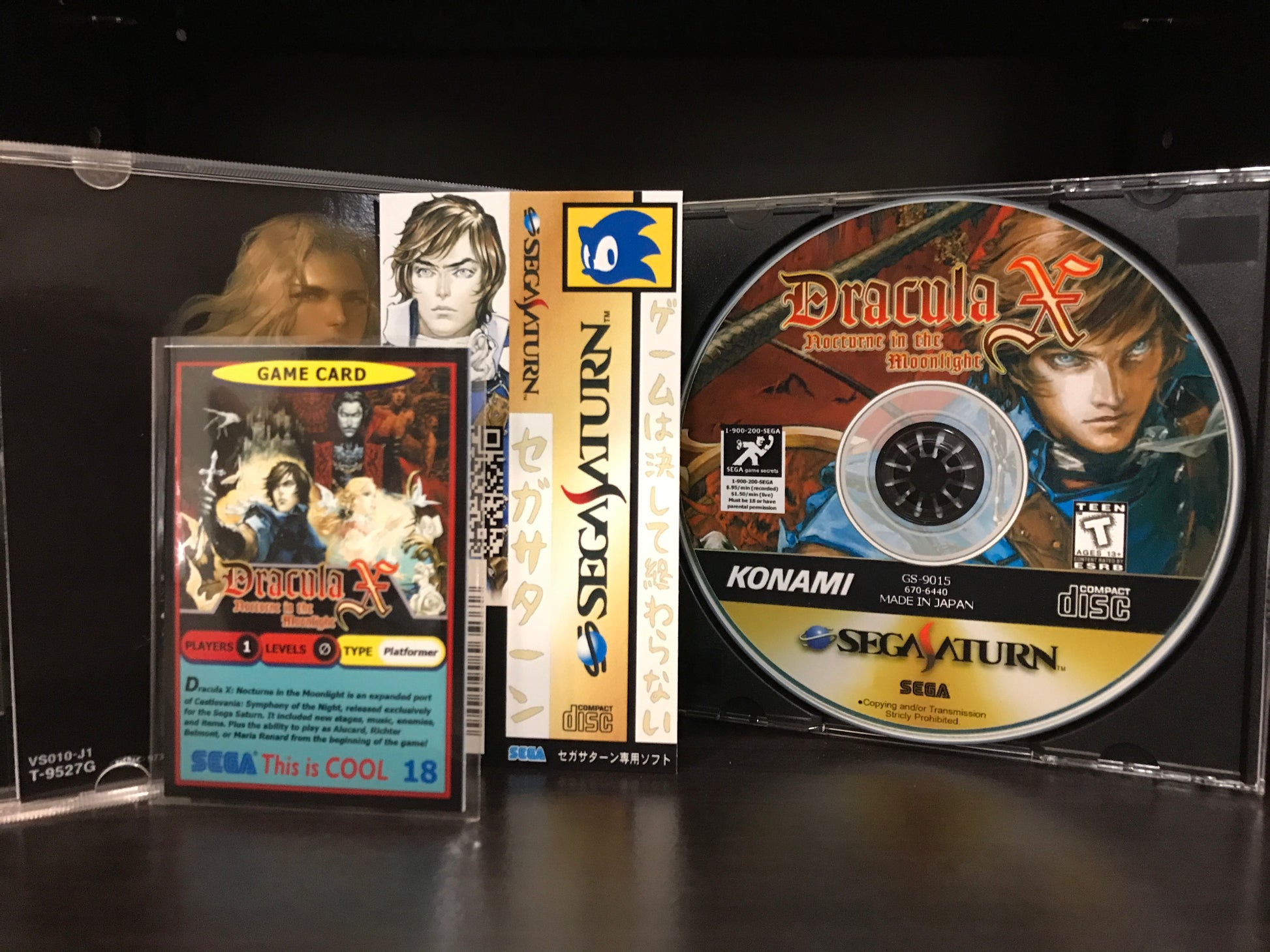 Dracula X: Nocturne in the Moonlight for the Sega Saturn. This is an English translation of the once Japanese exclusive considered to be the ultimate edition for Castlevania Symphony of the Night. Please note, this game works with Pseudo Saturn Kai or a system that is hard modded at present it is NOT compatible with the Polymega.