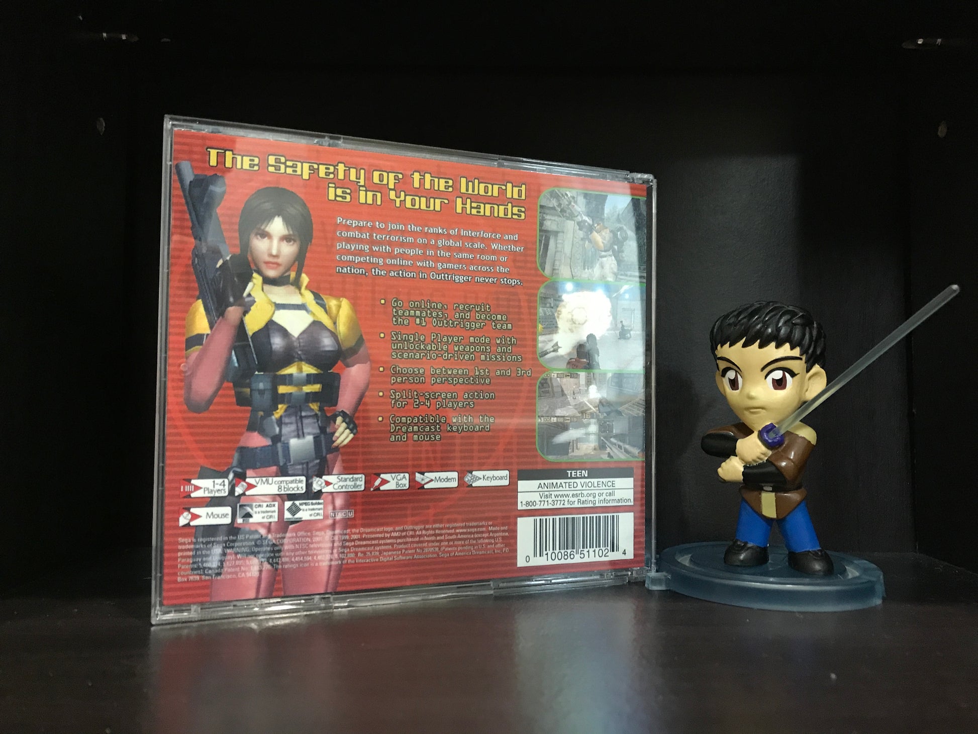 'Outtrigger' for the Sega Dreamcast. Works with all region 0 and 1 Dreamcast systems, no modifications needed just pop it in and play.