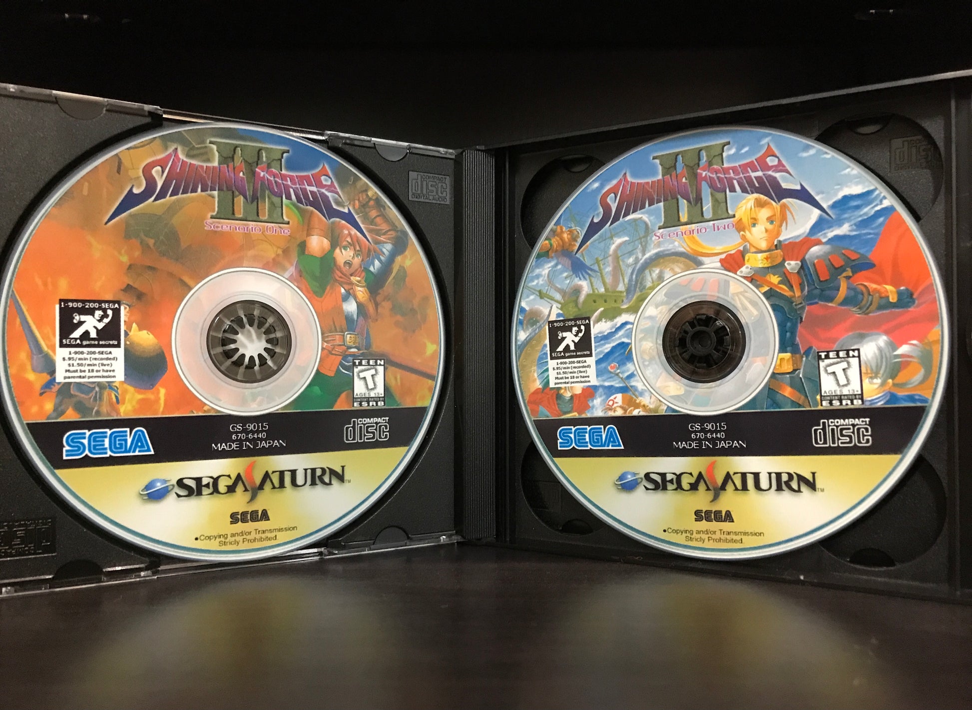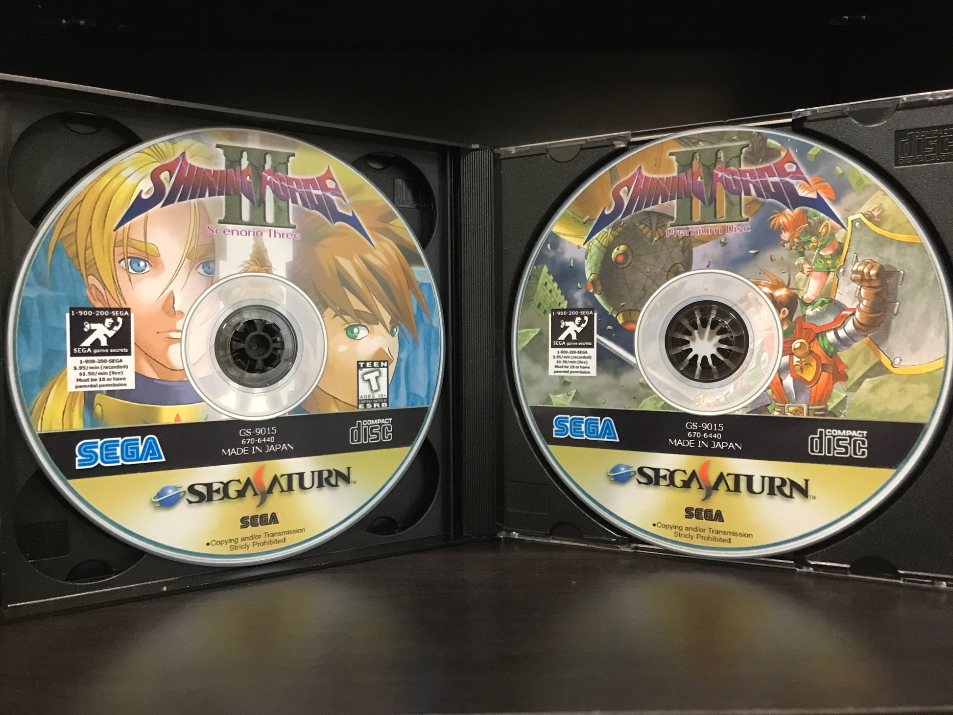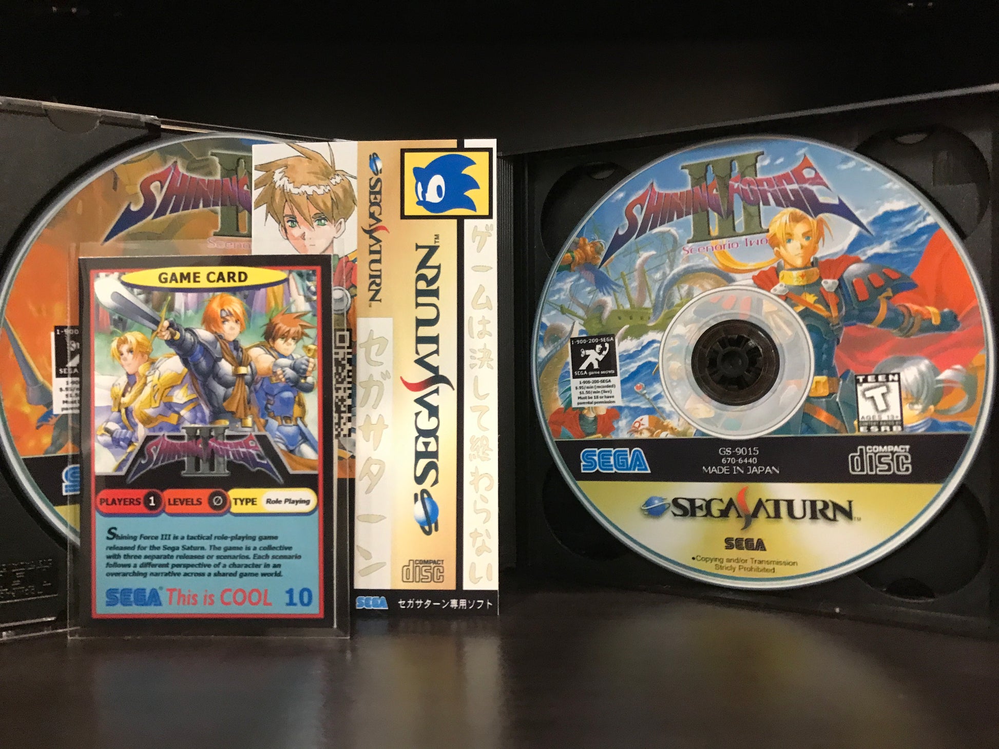 Shining Force III for the Sega Saturn. This is an English translation of the once Japanese exclusive. This features all three Shining Force III scenarios plus the Shining Force III Premium disc! Please note, this game works with Pseudo Saturn Kai or a system that is hard modded as well as the Polymega.