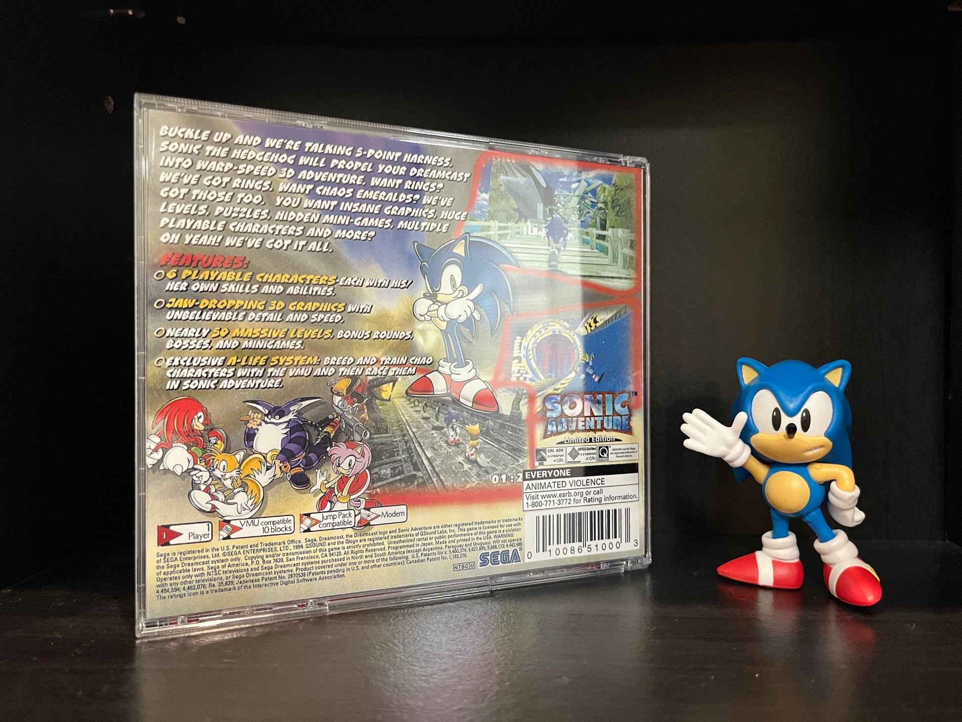 'Sonic Adventure: Limited Edition' for the Sega Dreamcast. Works with all region 0 and 1 Dreamcast systems, no modifications needed just pop it in and play.