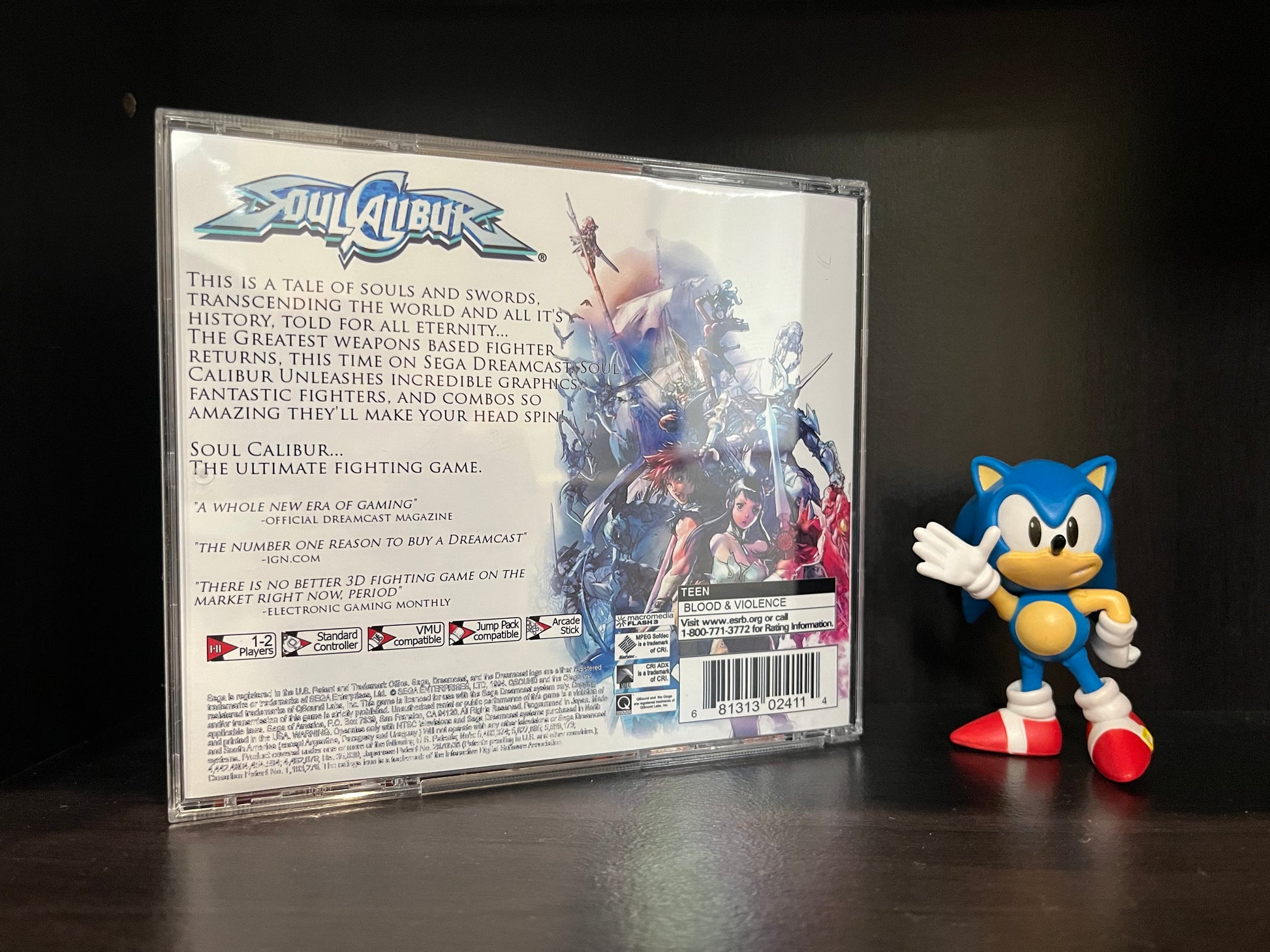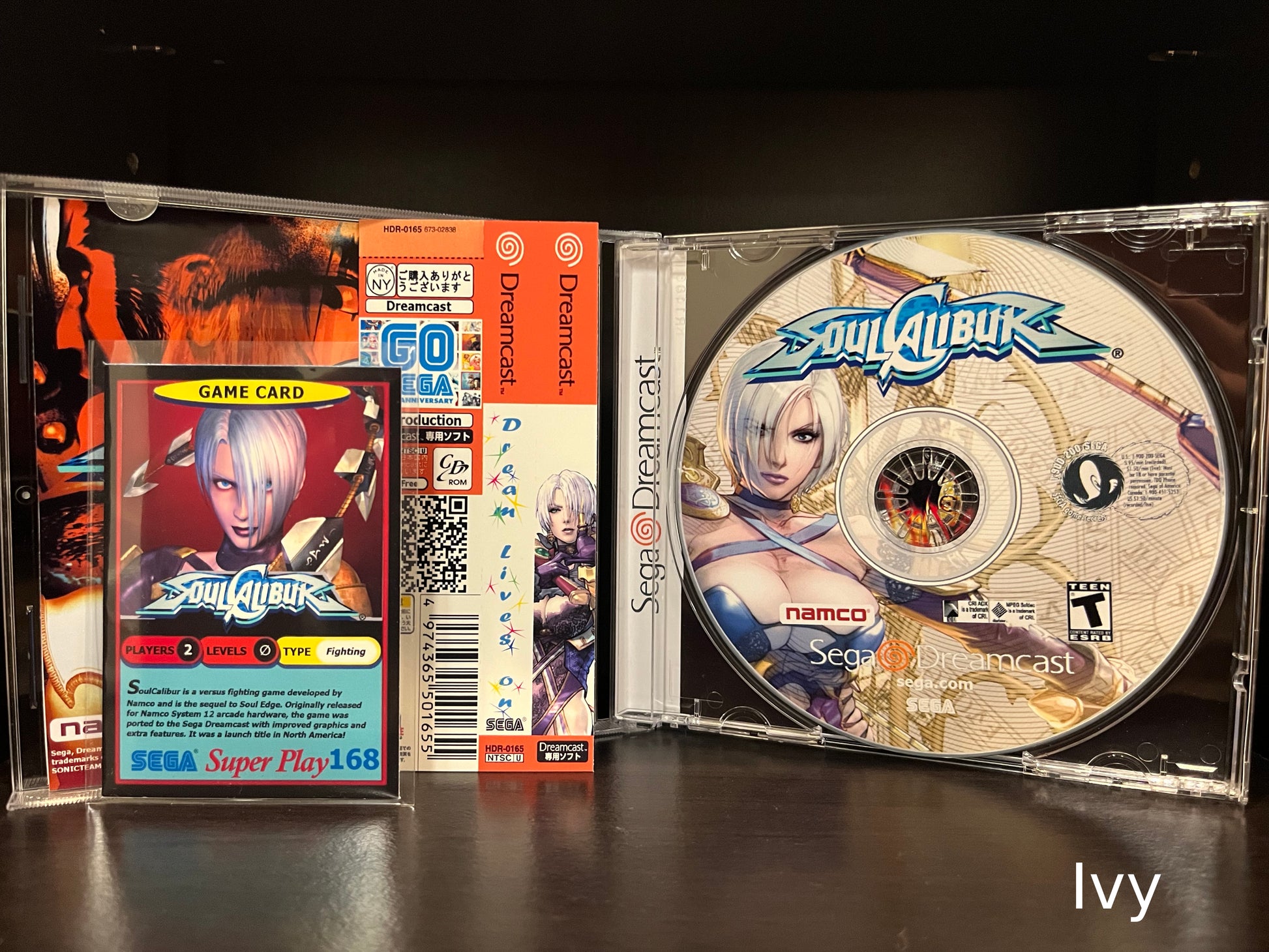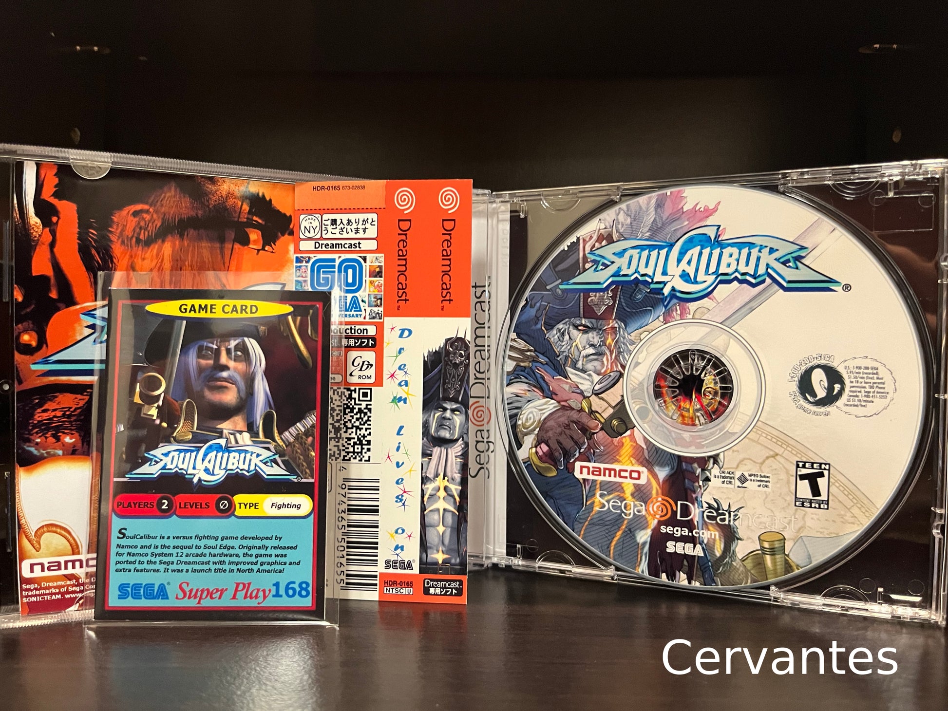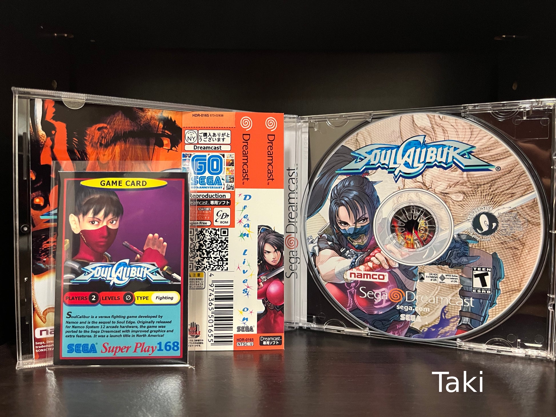 'Soul Calibur' for the Sega Dreamcast. Works with all region 0 and 1 Dreamcast systems, no modifications needed just pop it in and play. Please note there are a total of eight different variants to choose from, each based off a character from the game!