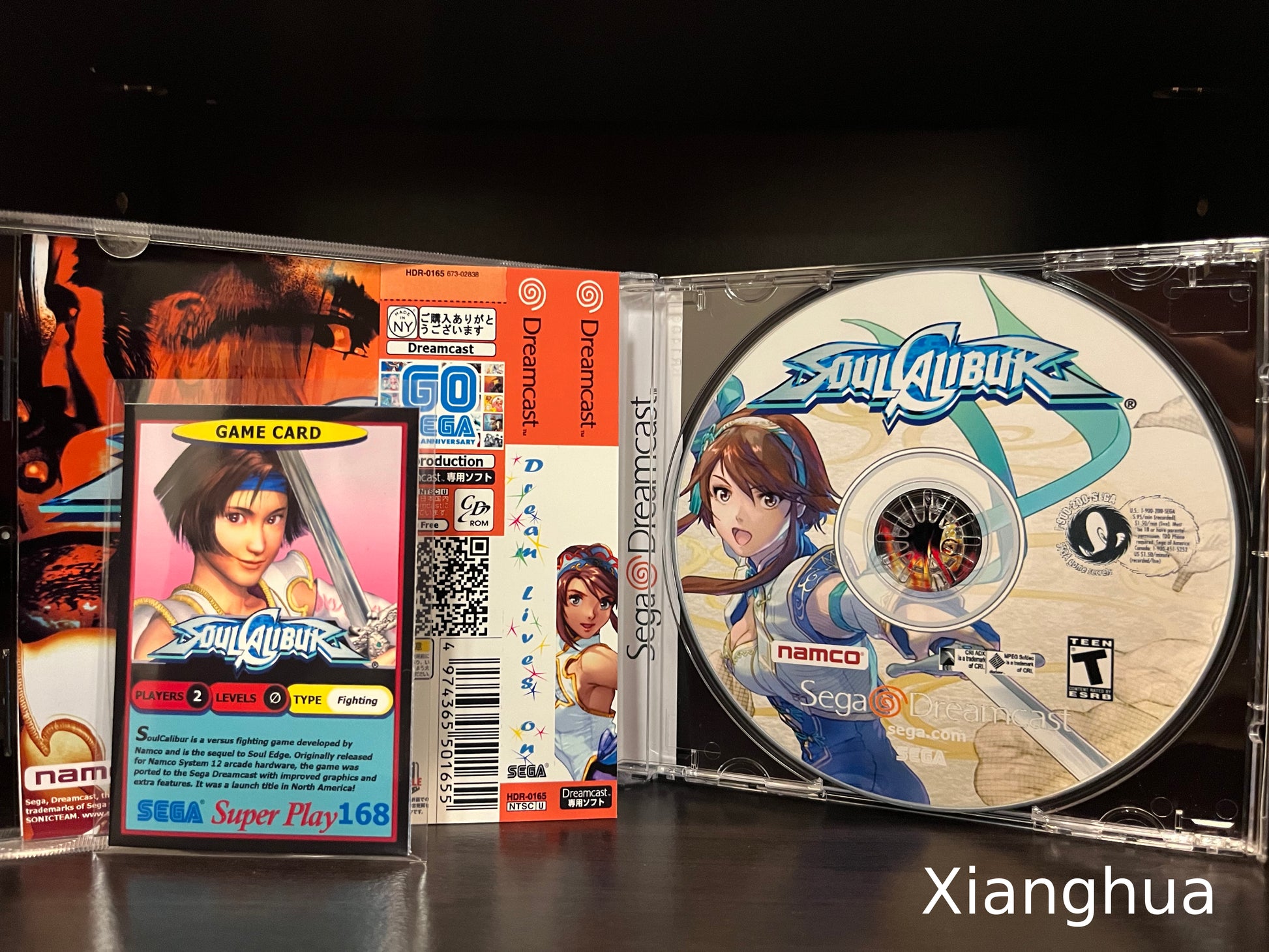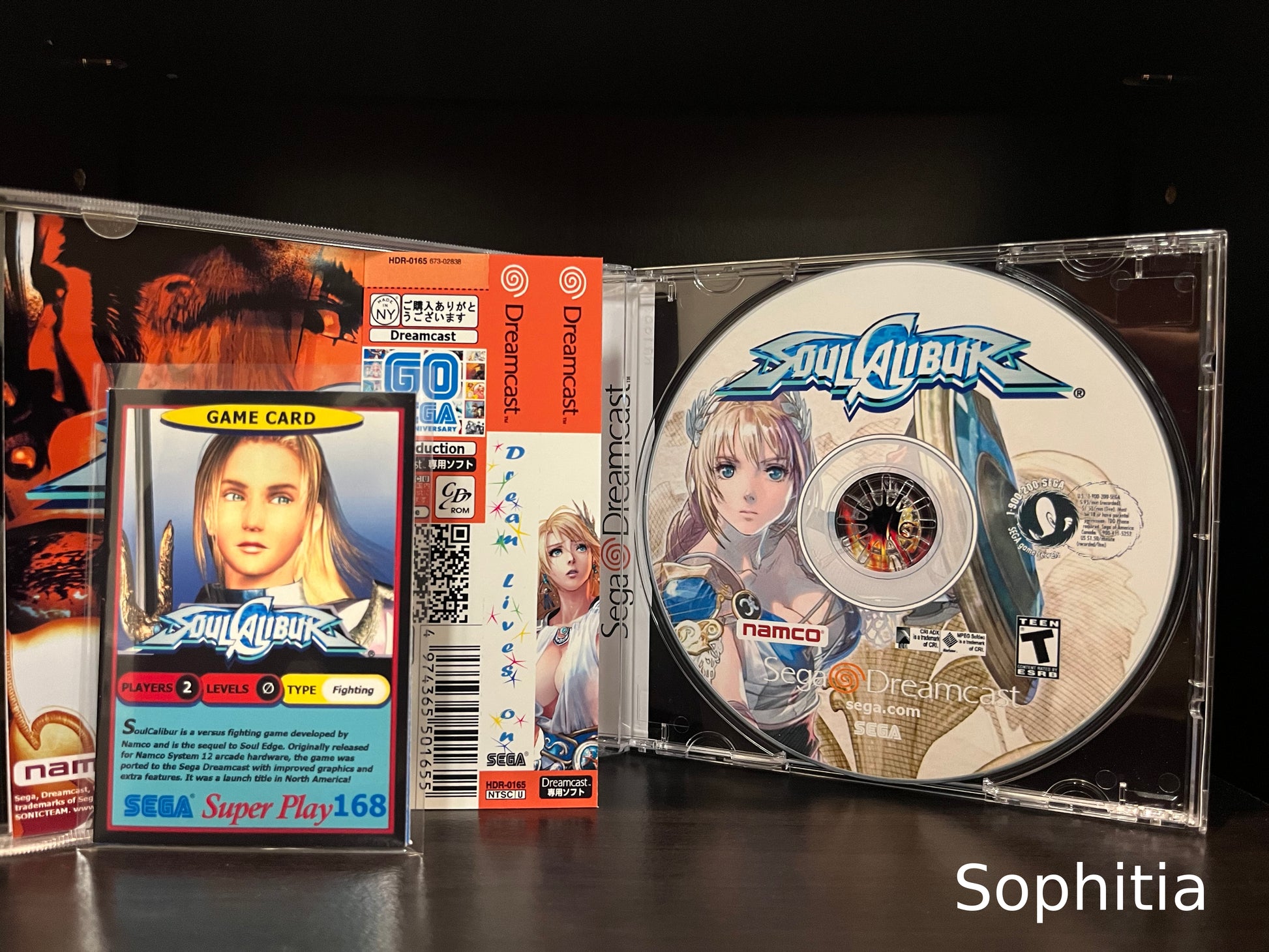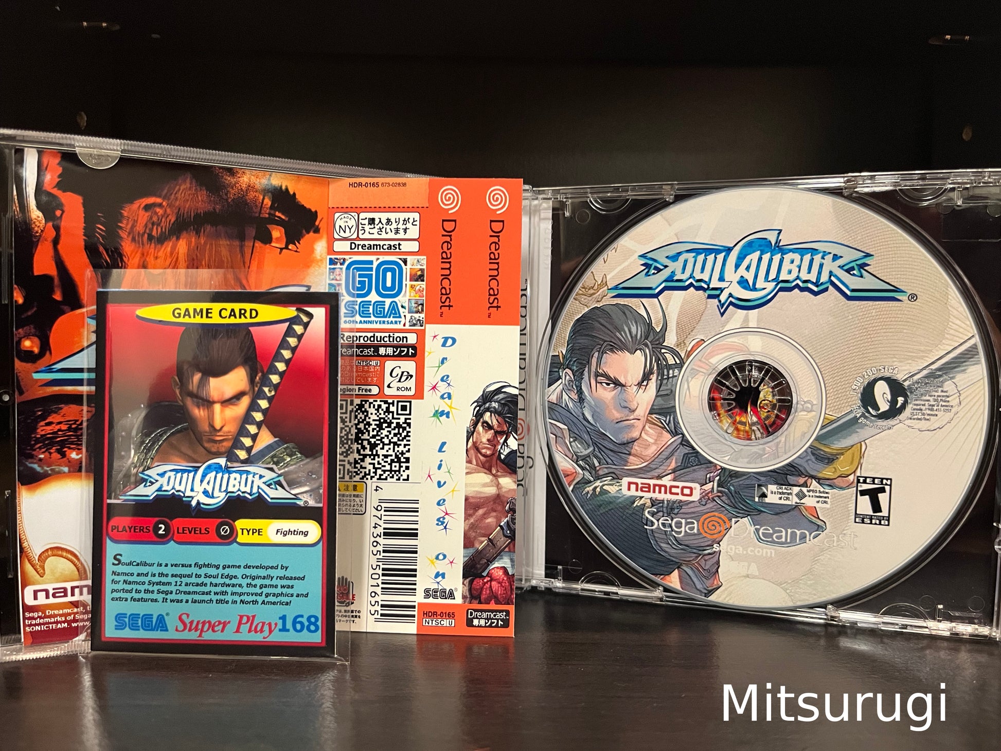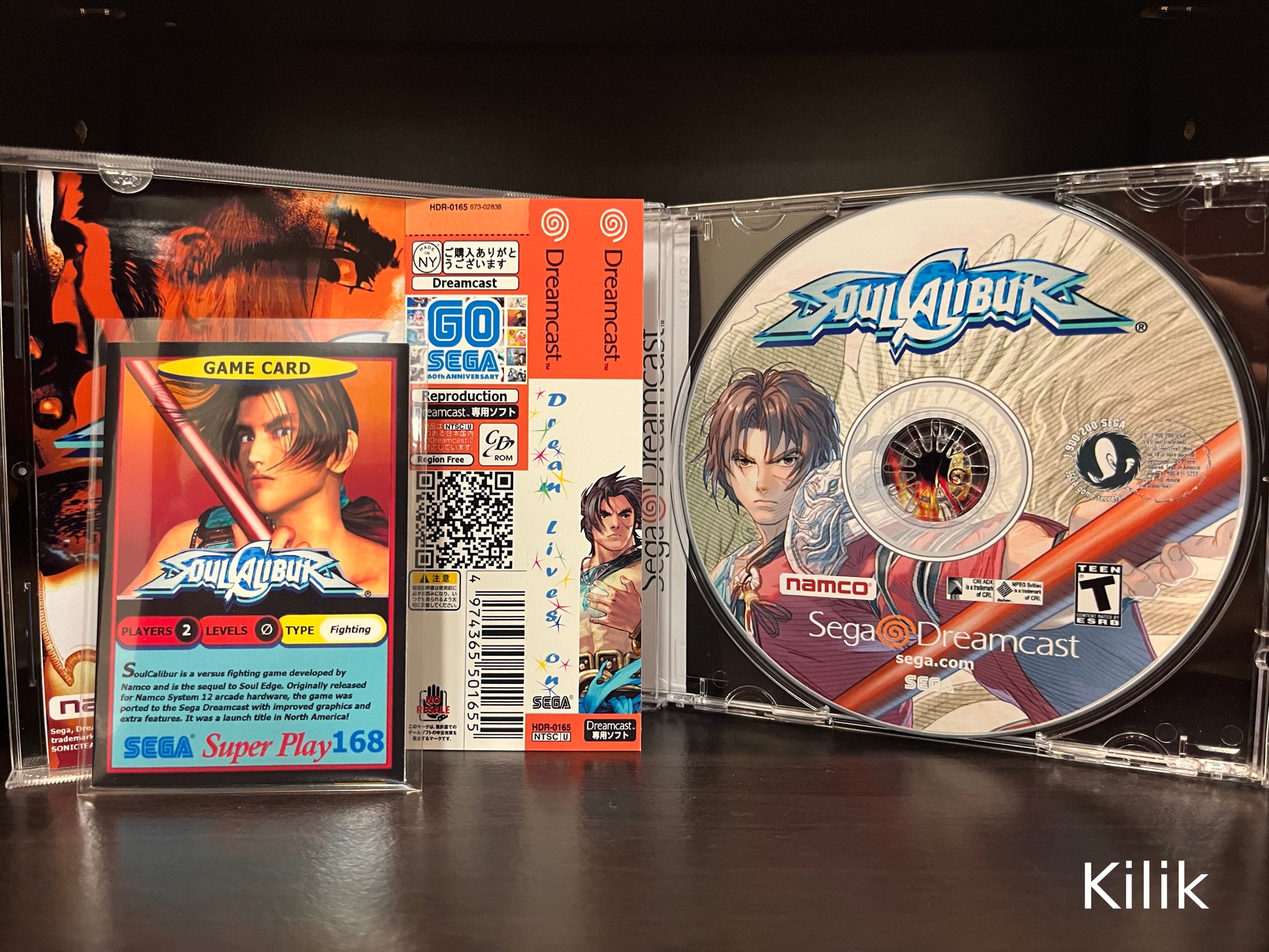 'Soul Calibur' for the Sega Dreamcast. Works with all region 0 and 1 Dreamcast systems, no modifications needed just pop it in and play. Please note there are a total of eight different variants to choose from, each based off a character from the game!