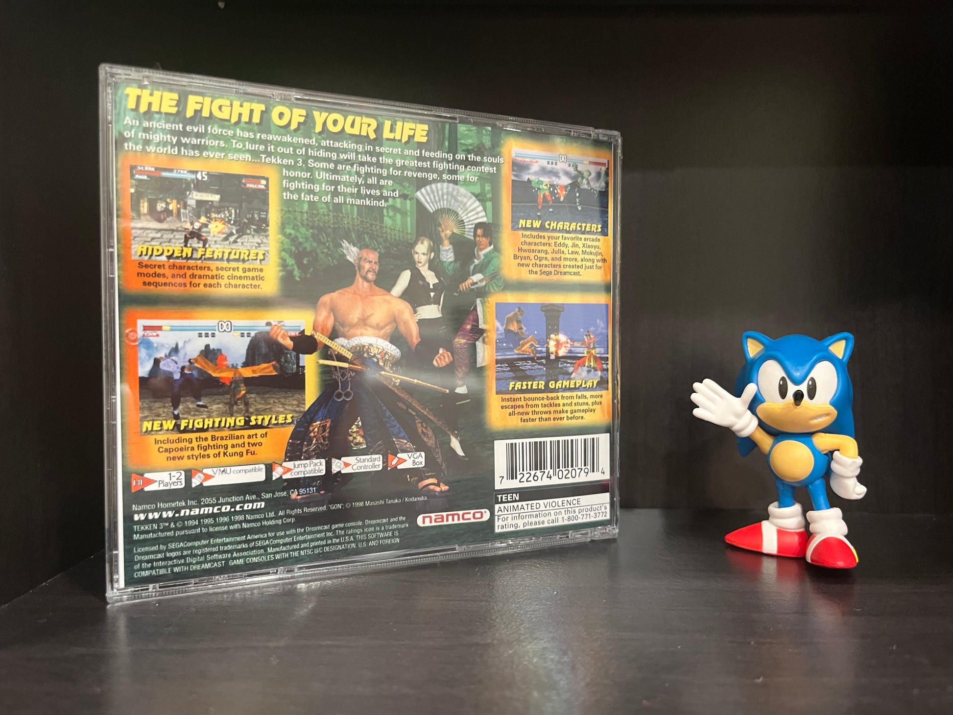 Tekken 3 for the Sega Dreamcast. This two disc version features both the bleemcast boot disc as well as Tekken 3 itself. Utilizing the power of the Dreamcast, this version of Tekken 3 features enhanced resolution and anti aliasing resulting in a sharper superior version than what was originally produced for the PlayStation! Works with all region 0 and 1 Dreamcast systems, no modifications needed just pop it in and play.