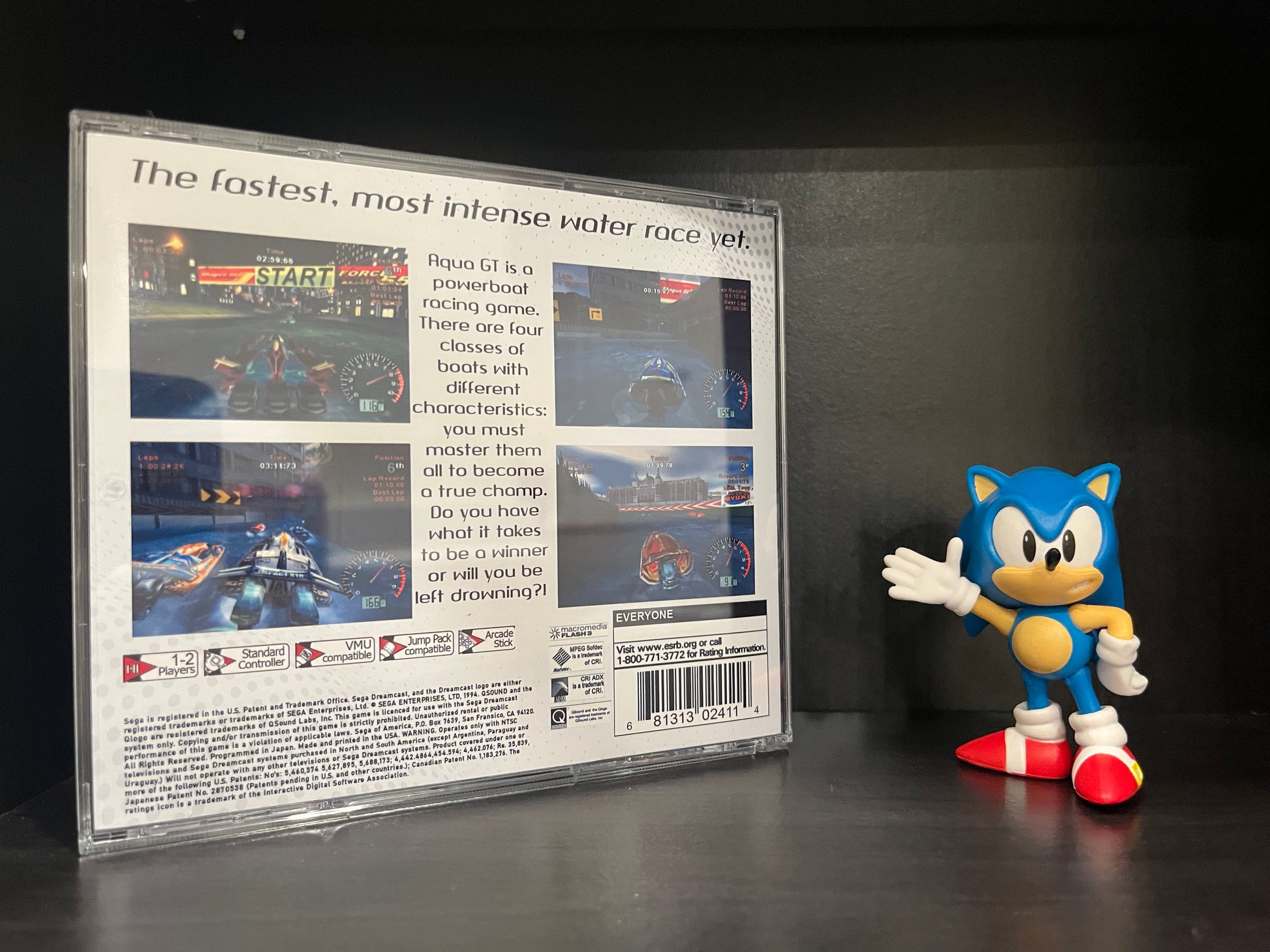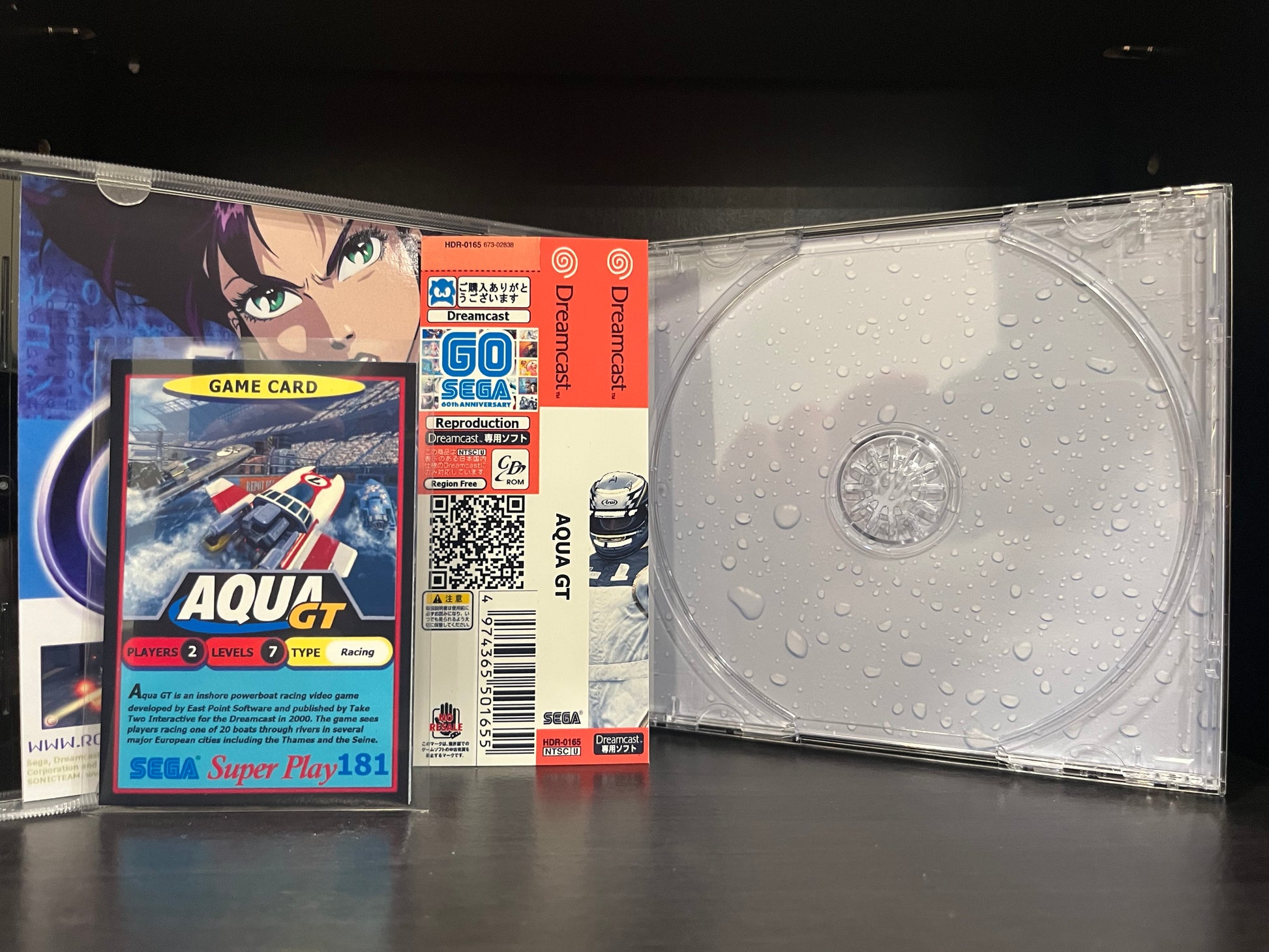 'Aqua GT' for the Sega Dreamcast. Works with all region 0 and 1 Dreamcast systems, no modifications needed just pop it in and play.