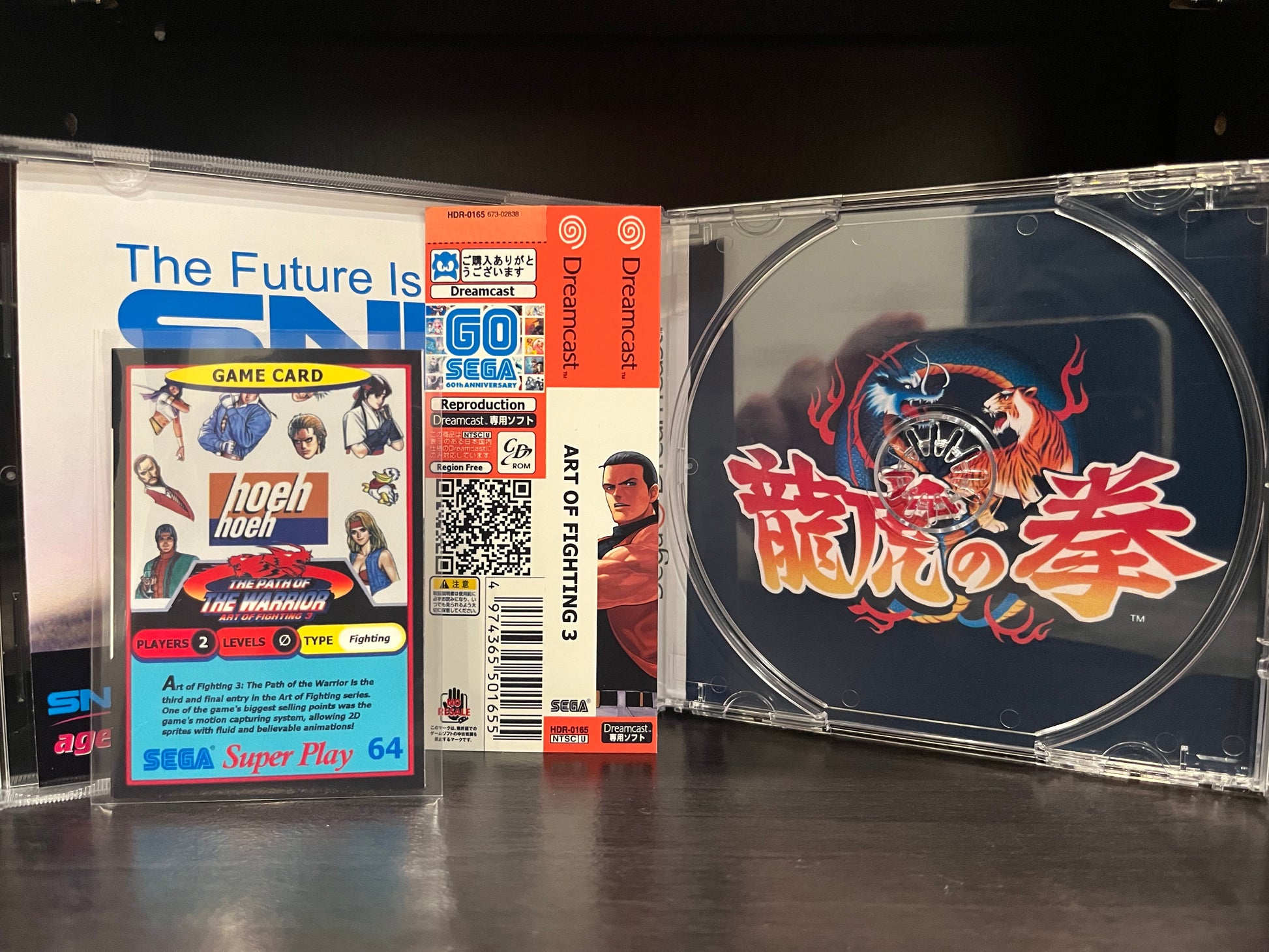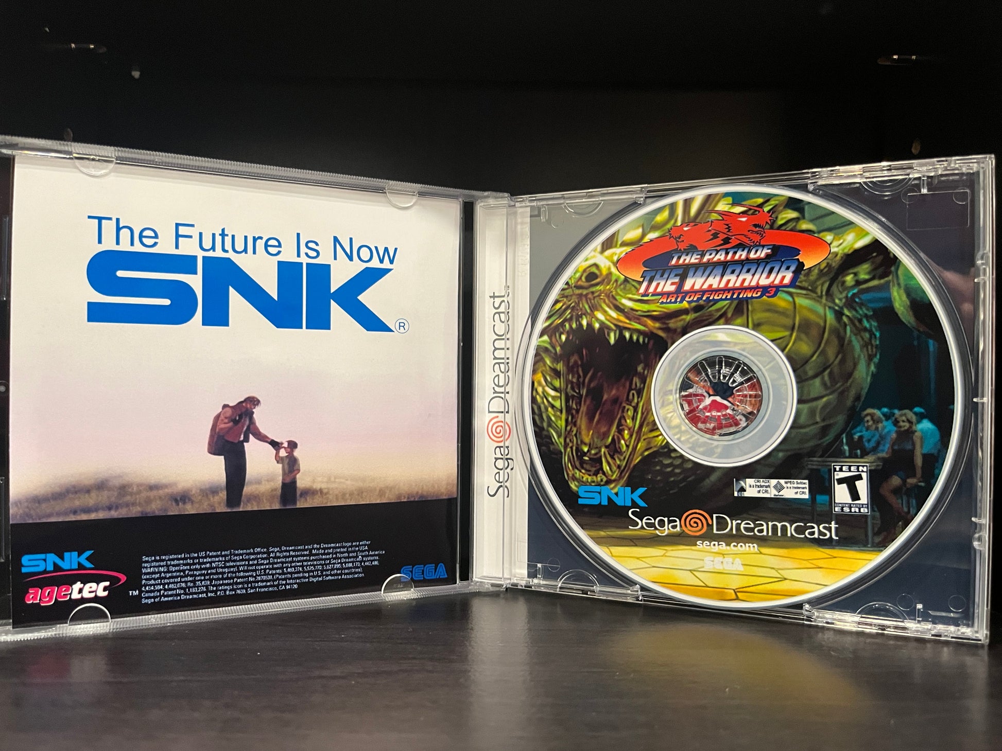 'Art of Fighting 3: The Path of the Warrior' for the Sega Dreamcast. Works with all region 0 and 1 Dreamcast systems, no modifications needed just pop it in and play.