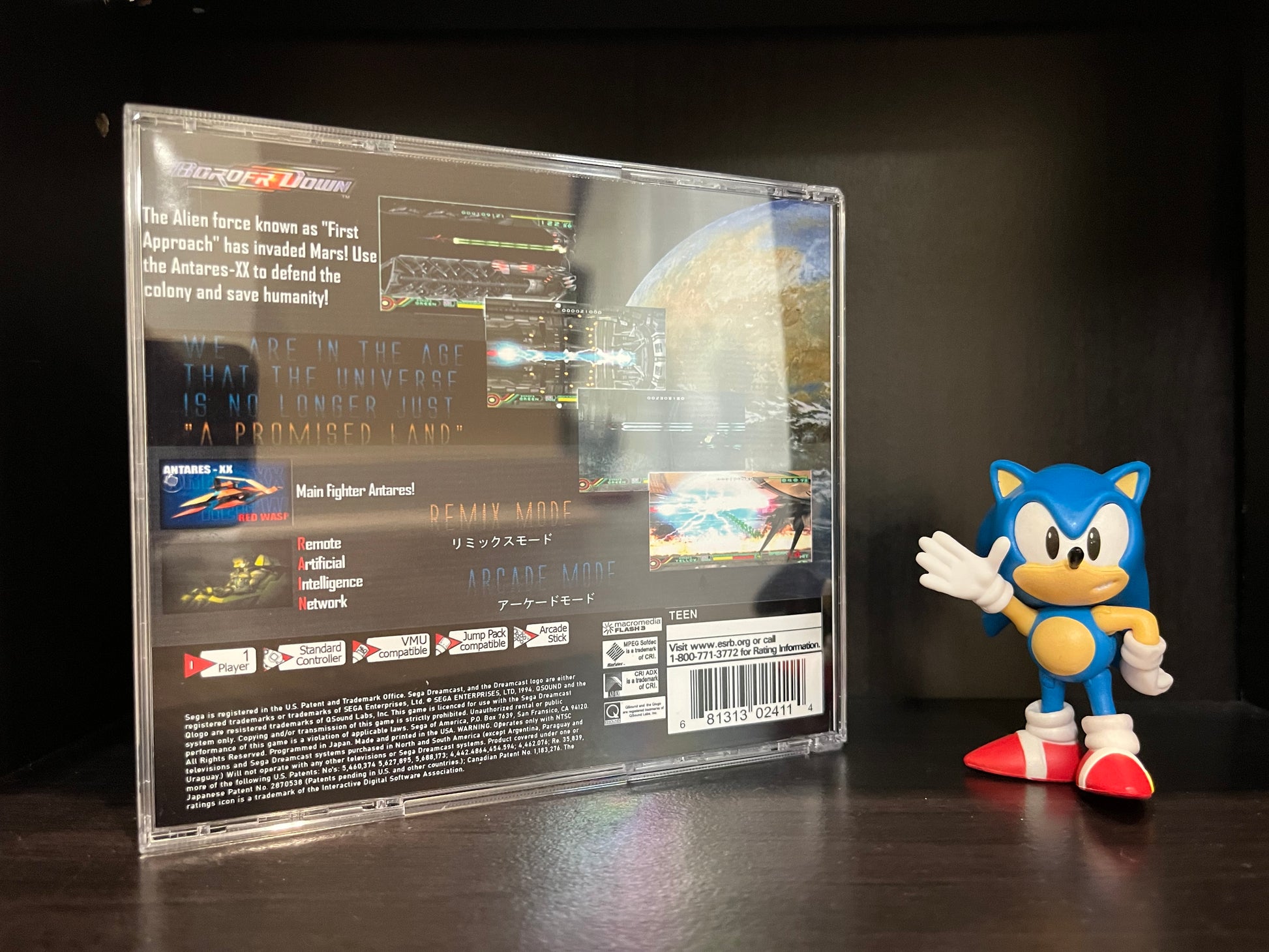 'Border Down' for the Sega Dreamcast. Works with all region 0 and 1 Dreamcast systems, no modifications needed just pop it in and play.