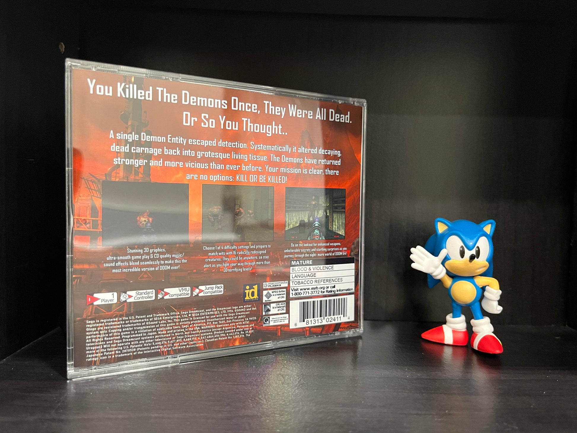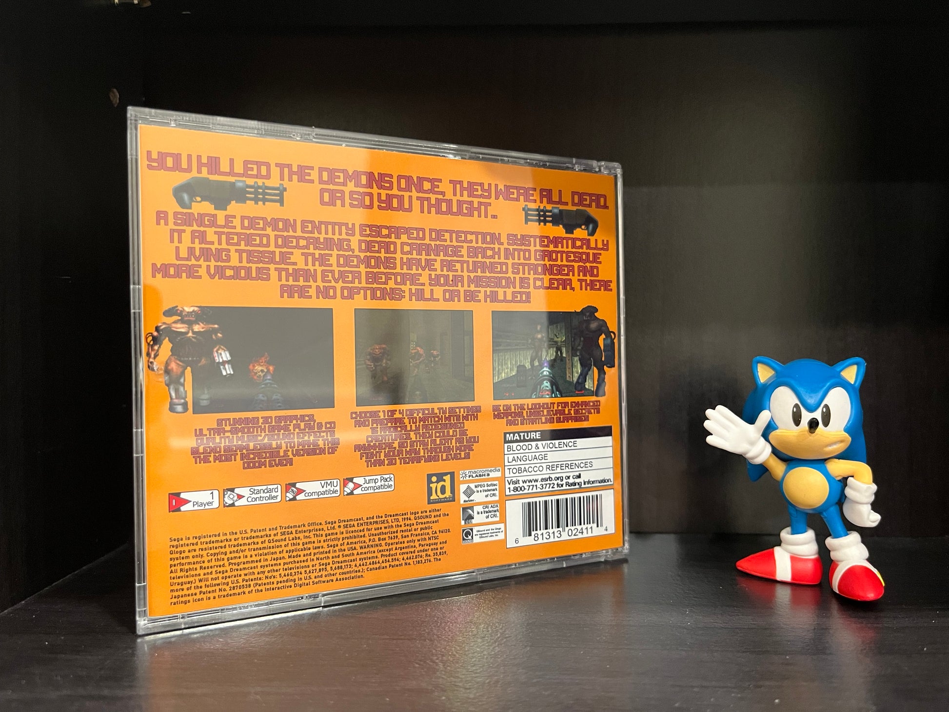'Doom 64' for the Sega Dreamcast. Works with all region 0 and 1 Dreamcast systems, no modifications needed just pop it in and play. Please note there are two different cover arts to choose from, modern or classic!