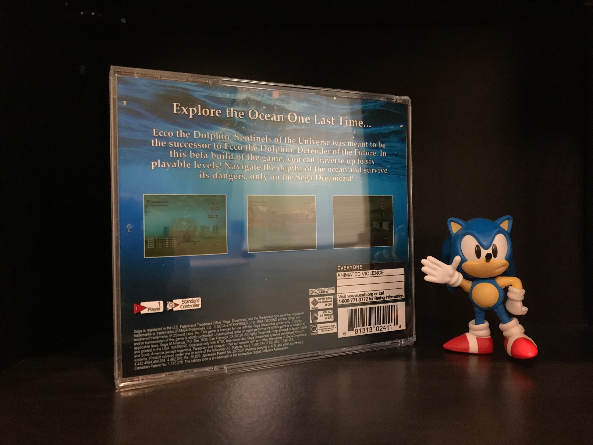 Ecco the Dolphin: Sentinels of the Universe for the Sega Dreamcast. This is an early build of the 'last' Ecco game that was eventually stalled in development. Utilize a level selector to explore and play through a multitude of stages / environments. Works with all region 0 and 1 Dreamcast systems, no modifications needed just pop it in and play.