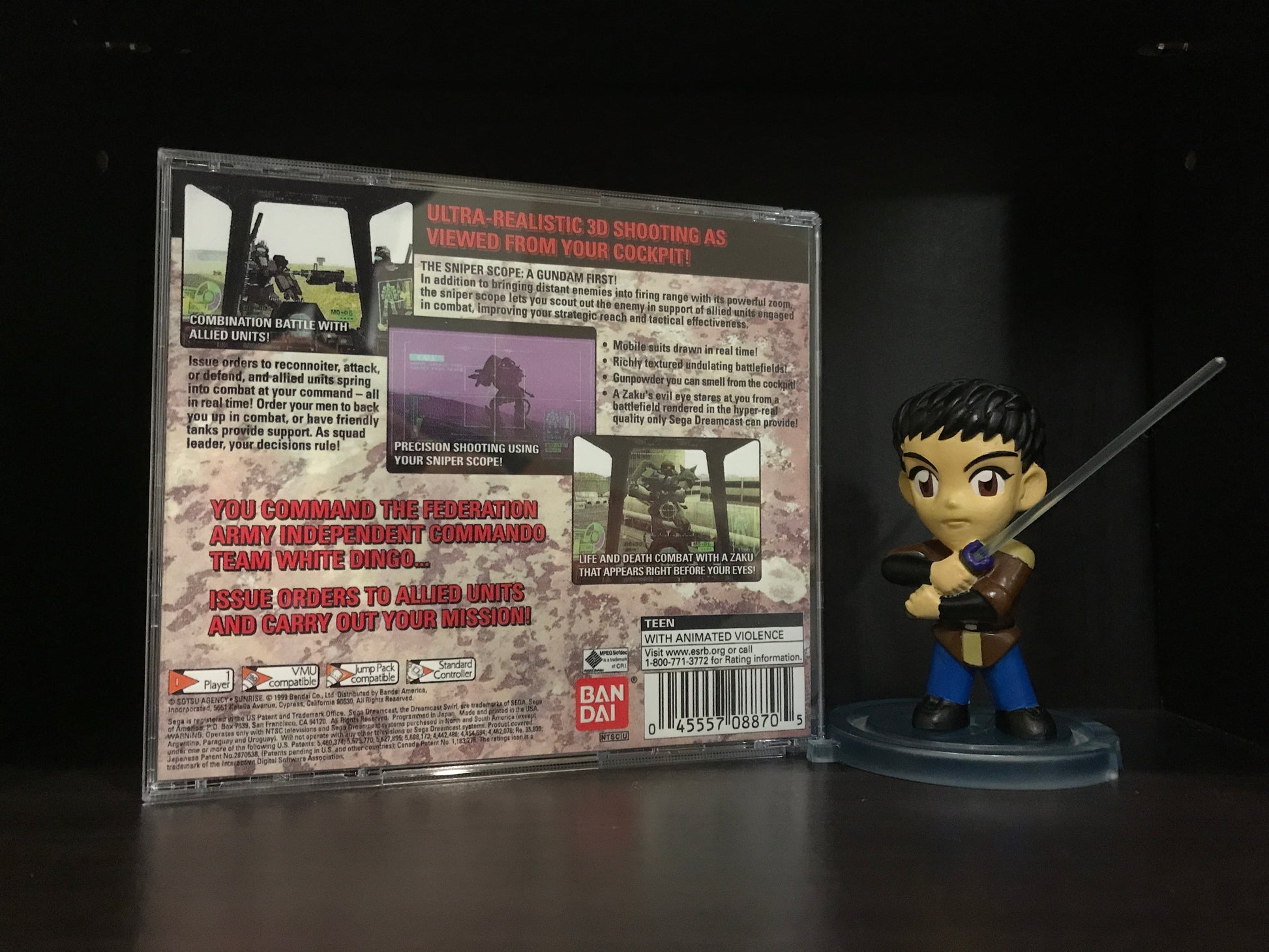 'Gundam Side Story 0079: Rise from the Ashes' for the Sega Dreamcast. Works with all region 0 and 1 Dreamcast systems, no modifications needed just pop it in and play.