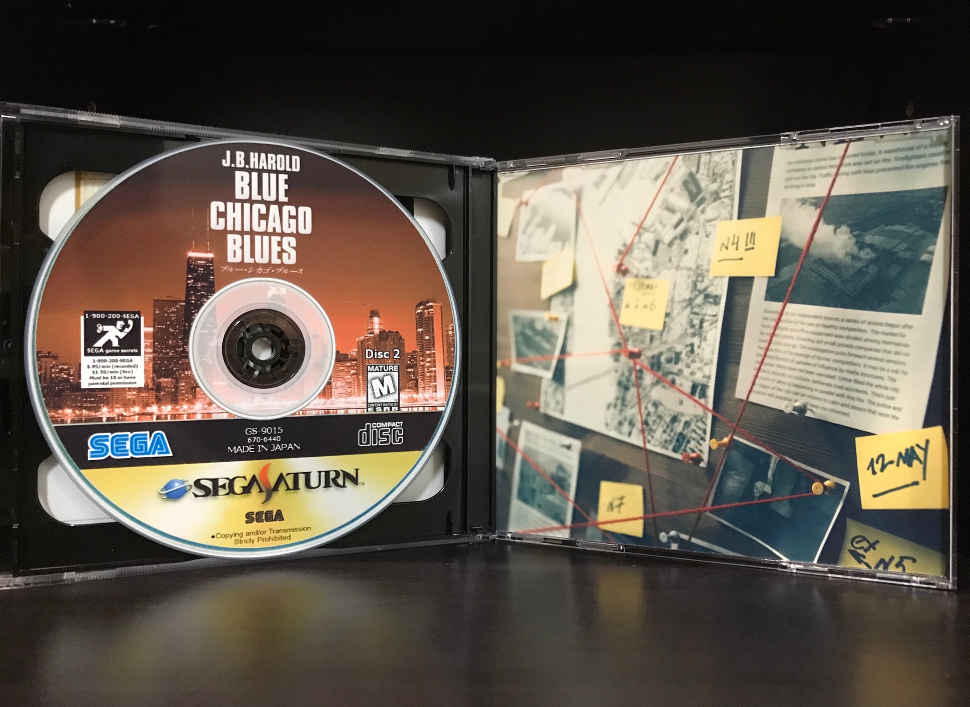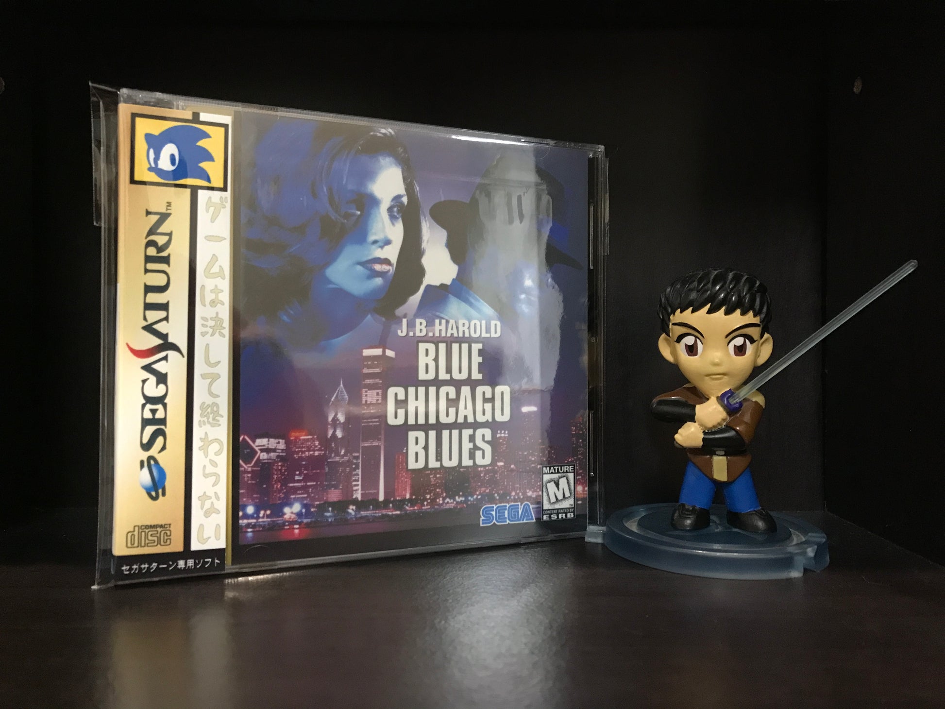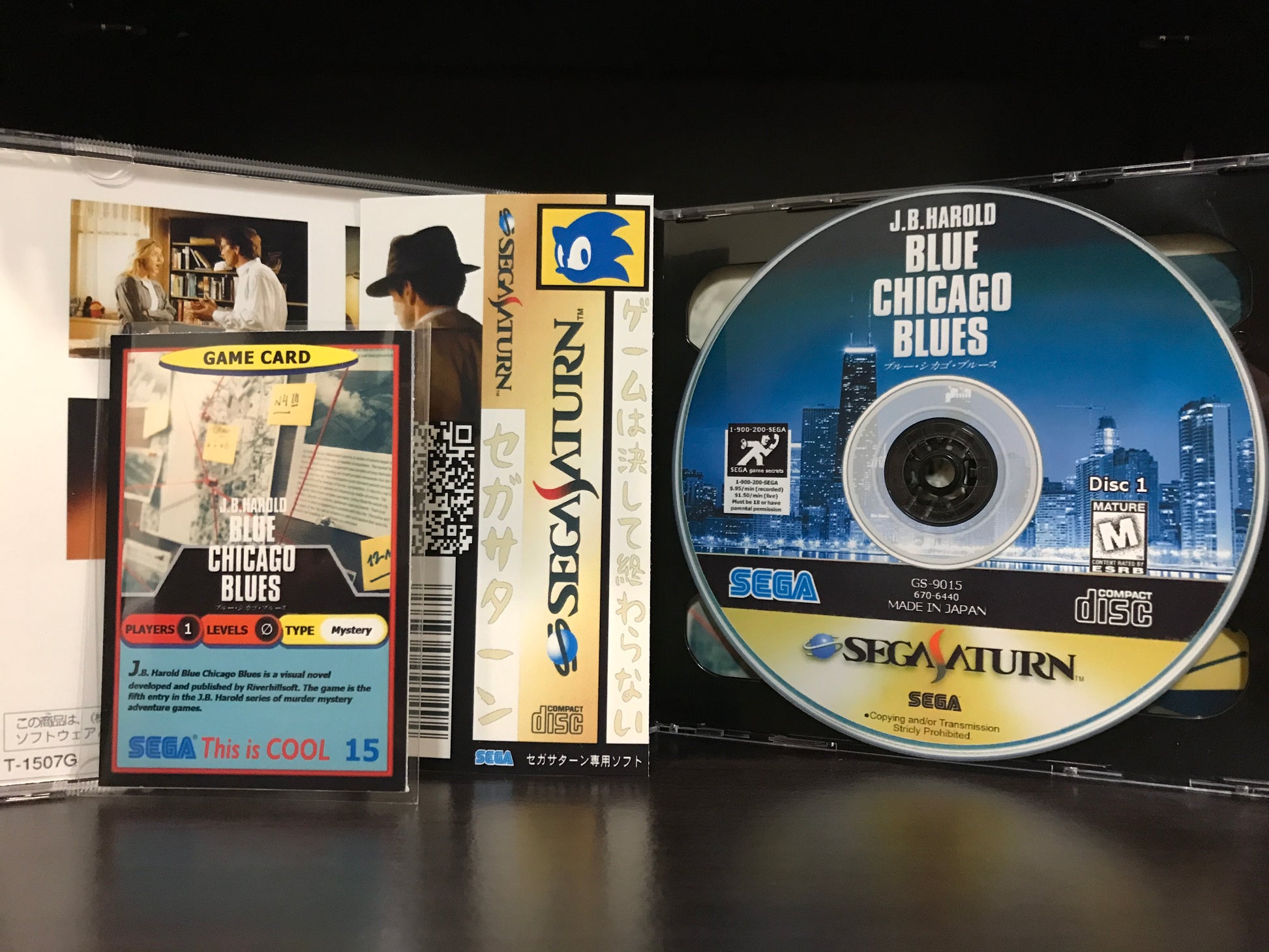 'J.B. Harold Blue Chicago Blues' for the Sega Saturn. This is an English translation of the once Japanese murder mystery exclusive. Please note, this game works with Pseudo Saturn Kai or a system that is hard modded as well as the Polymega.