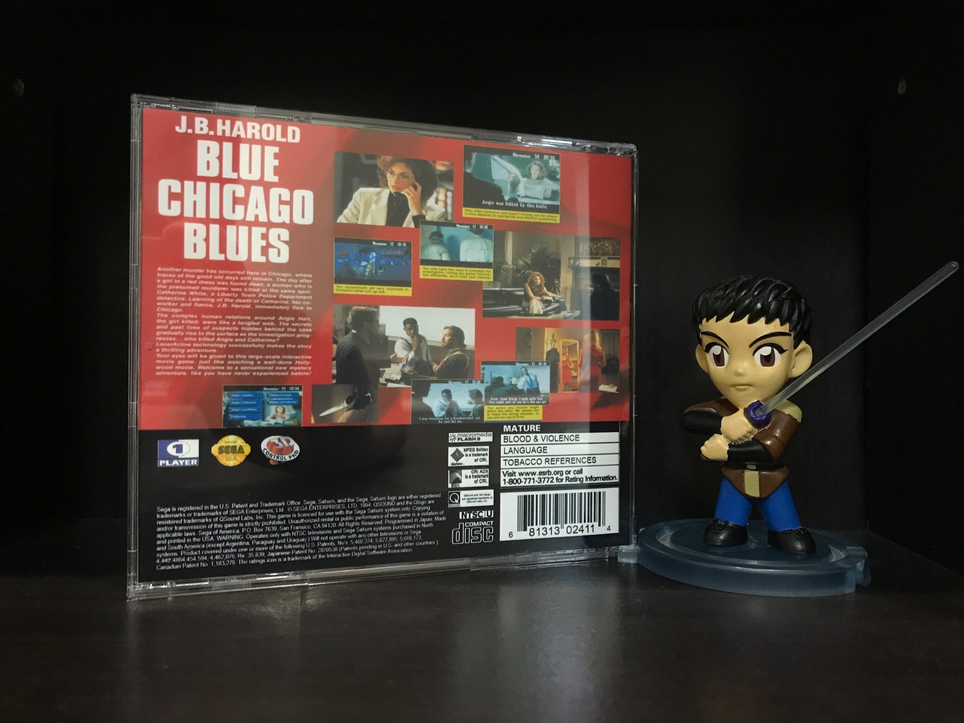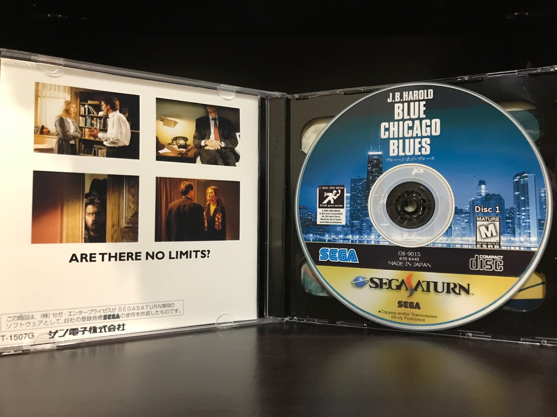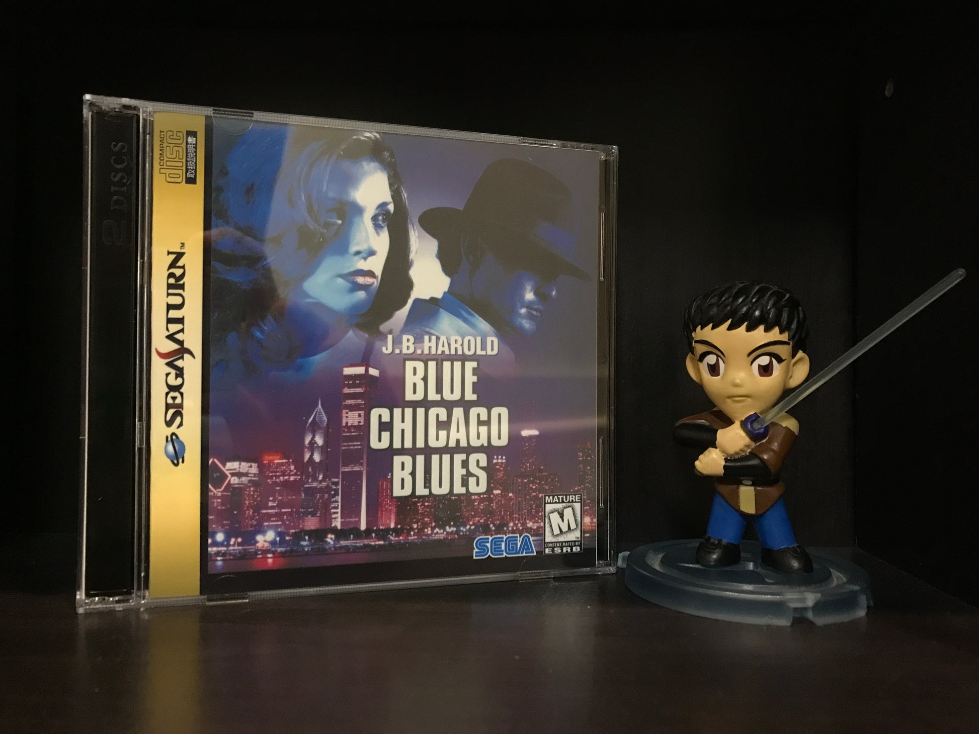 'J.B. Harold Blue Chicago Blues' for the Sega Saturn. This is an English translation of the once Japanese murder mystery exclusive. Please note, this game works with Pseudo Saturn Kai or a system that is hard modded as well as the Polymega.