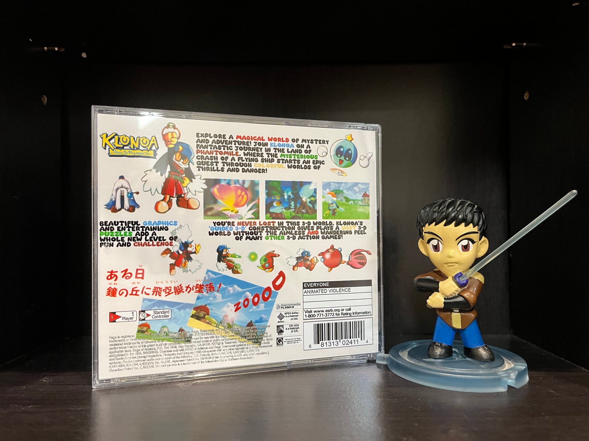 Klonoa Door to Phantomile for the Sega Dreamcast. Utilizing the power of the Dreamcast, this version of Klonoa features enhanced resolution and anti aliasing resulting in a sharper superior version than what was originally produced for the PlayStation! Please note this title does not have FMV nor VMU functionality. Works with all region 0 and 1 Dreamcast systems, no modifications needed just pop it in and play.