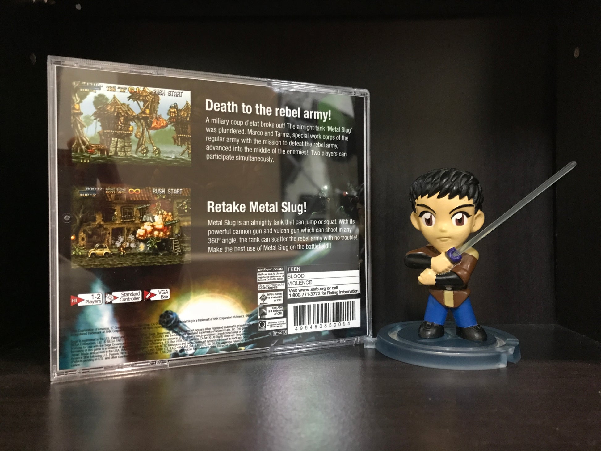 Metal Slug for the Sega Dreamcast. Works with all region 0 and 1 Dreamcast systems, no modifications needed just pop it in and play.