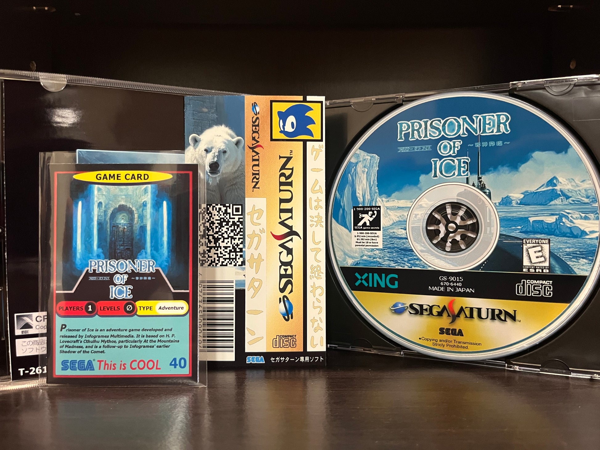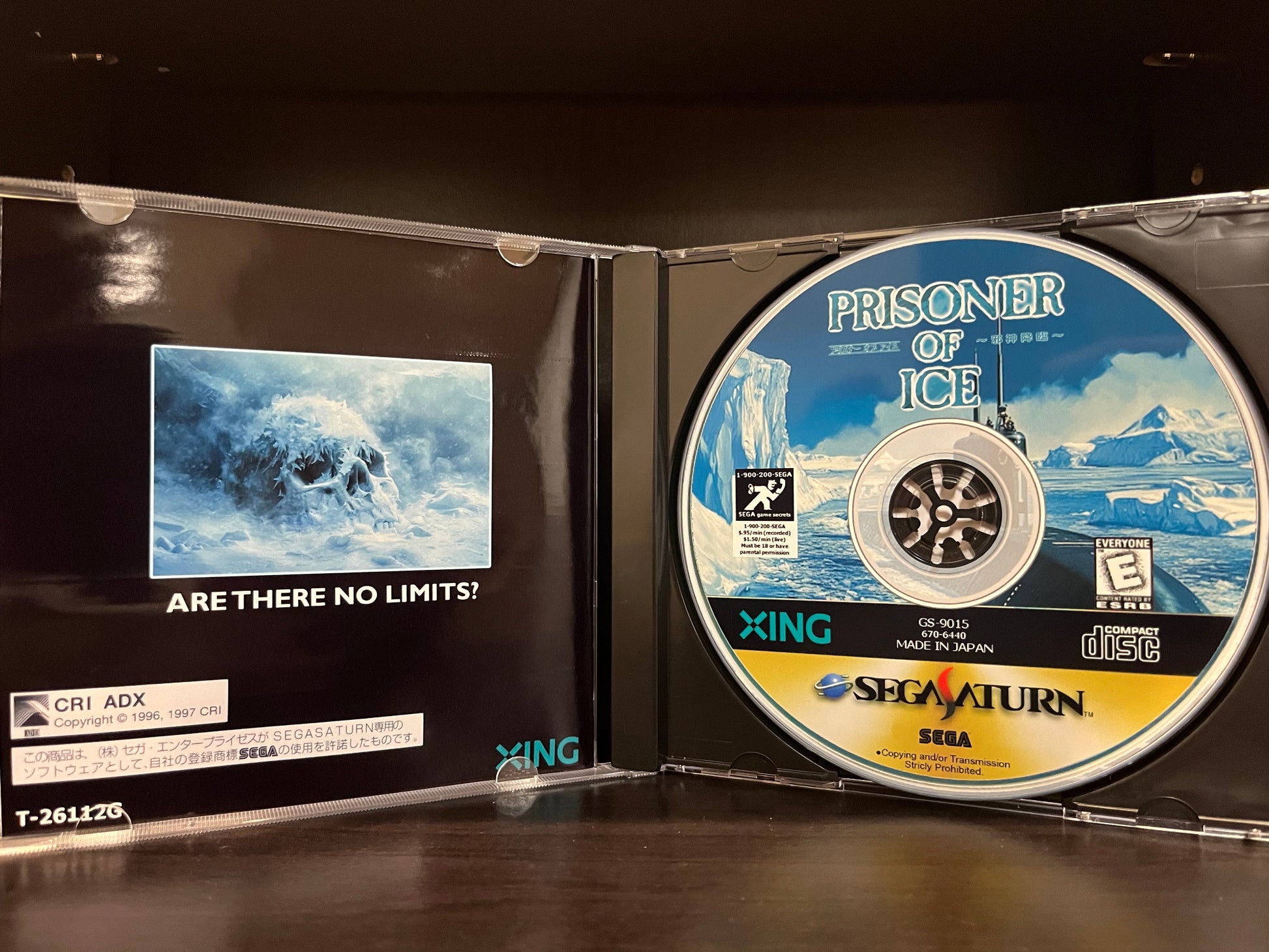 Prisoner of Ice for the Sega Saturn. This is an English translation of the once Japanese exclusive title. Please note, this game works with Pseudo Saturn Kai or a system that is hard modded as well as the Polymega.