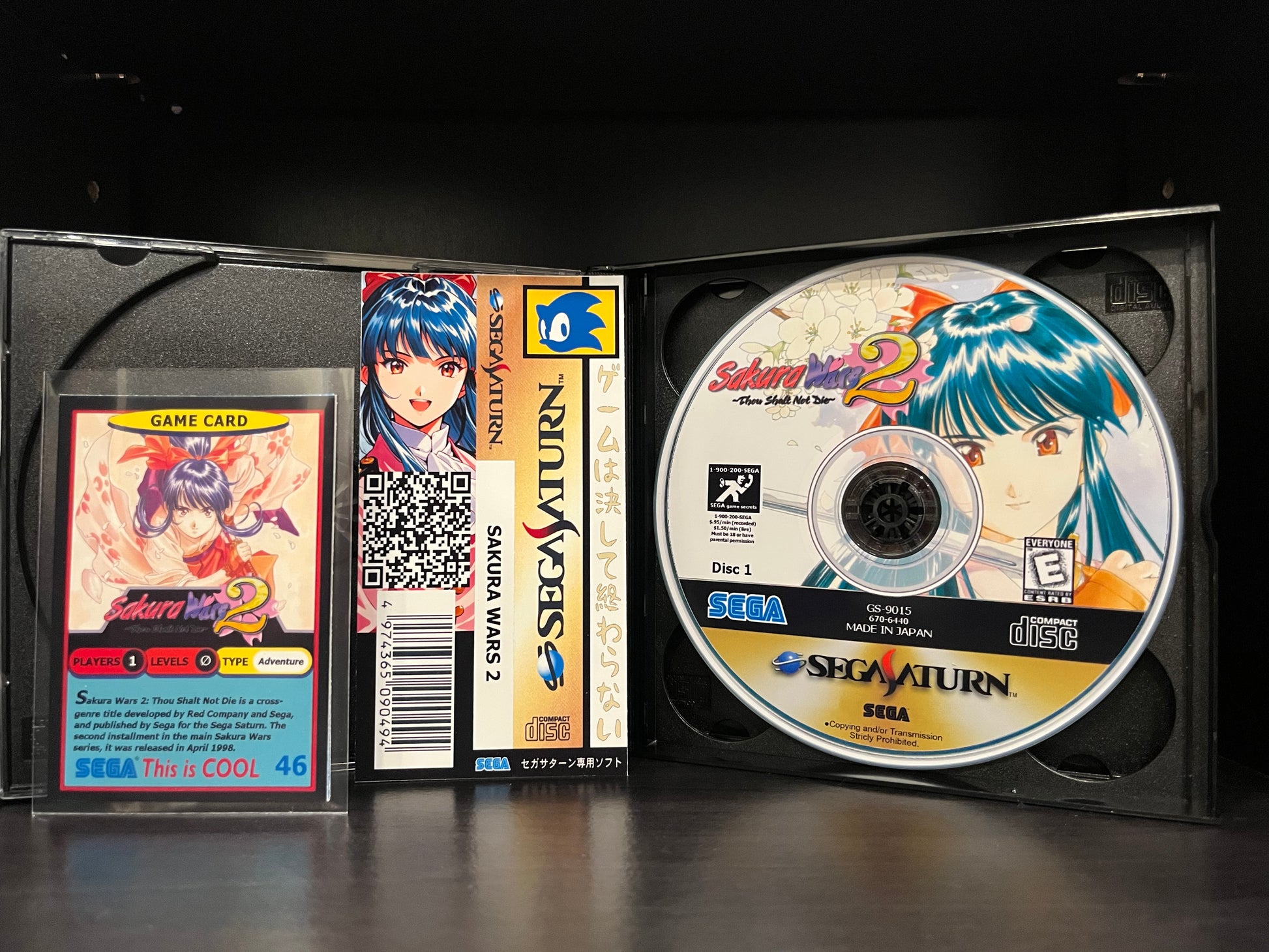 Sakura Wars 2 for the Sega Saturn. This is an English translation of the once Japanese action / rpg exclusive. Please note, this game works with Pseudo Saturn Kai or a system that is hard modded.